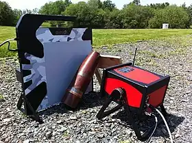 L'appareil se présente sur la forme d'un boîtier rectangulaire dont la surface active varie de 5 × 5 cm2 jusqu'à 60 × 100 cm2 et dont l'épaisseur va de 1 à 10 cm. La taille la plus répandue est celle utilisée en médecine humaine avec 36 × 43 cm2.
