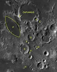 Par convention, les cratères satellites sont identifiés sur les cartes lunaires en plaçant la lettre sur le côté du point central du cratère qui est le plus proche de Capuanus.