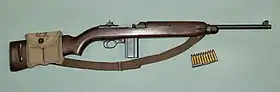 La carabine M1 ne comporte pas de tenon de baïonnette au cours de la Seconde Guerre mondiale mais il a été ajouté par la suite (guerre de Corée).