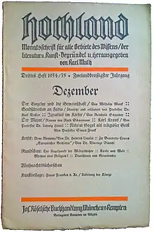 - Konrad Ackermann (de), Der Widerstand der Monatsschrift Hochland gegen den Nationalsozialismus. Kösel, Munich, 1965.