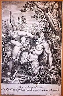 Pan vinto da Amore, gravure d'après Agostino Carracci.