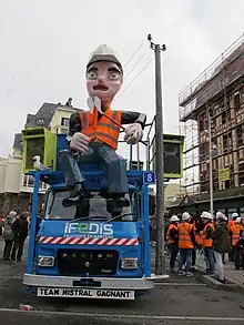 - Dimanche : cavalcade dans les rues de la ville, associant des chars et des groupes musicaux (fanfares, etc.). En 2012, 38 chars, 2 100 carnavaliers et 13 troupes musicales ont défilé.