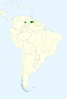 Cet oiseau fréquente les tepuys du Venezuela, du Guyana et du Brésil.