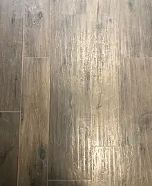 carrelage imitation parquet - La pose collée. C'est la pose la plus courante de nos jours. Un mortier colle est préalablement étendu sur le support (voire également sur le carreau quand il s'agit d'un carreau d'une taille de 30 x 30 et plus). Elle permet une meilleure désolidarisation des supports et offre une capacité d'adhérence durable sur tous les éléments intérieurs et extérieurs ou presque.