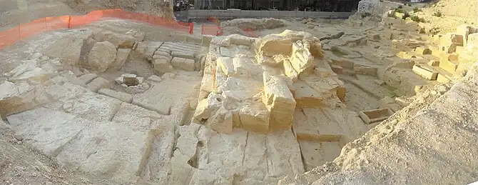 Zone d'exploitation de la carrière à l'époque hellénistique. Certains blocs sont encore en place.