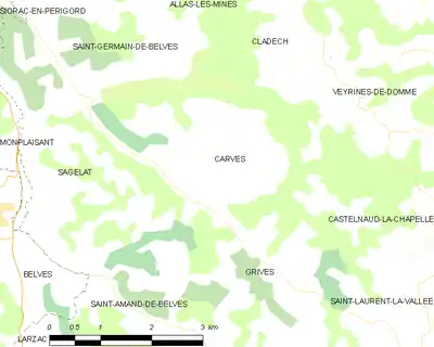 Carves est une commune française située dans le département de la Dordogne, en région Nouvelle-Aquitaine.