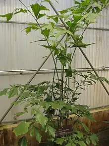 - Feuilles : les feuilles sont bipennées. Les pennes sont triangulaires ou cunéiformes, et irrégulièrement dentées sur les bords.