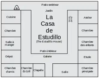 - (en) Cet article est partiellement ou en totalité issu de l’article de Wikipédia en anglais intitulé « Casa de Estudillo » (voir la liste des auteurs).