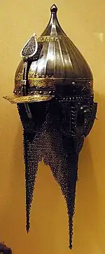 Les casques de meilleurs qualités ayant bénéficié de ce traitement auraient souvent vu leur apparence sombre soulagée par l’utilisation de nombreuses têtes de rivets dorées. Certains des casques les plus flamboyants ont été fabriqués pour les hussards à ailes polonaises, avec des crêtes en métal et agrandis, de forme décorative, les naseaux n'étant pas rares[8]. Un certain nombre de casques existants sont dotés de supports de panache tubulaires, ce qui, pris avec la preuve d'illustrations contemporaines, indique l'utilisation de panaches de plumes[2].