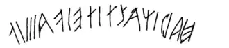 Autrefois, certains spécialistes ont vu l’inscription comme une incarnation précoce de l’alphabet runique, mais il est maintenant admis que le script est nord-étrusque et antérieur à la formation de l’alphabet runique.