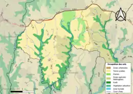 L'occupation des sols de la commune, telle qu'elle ressort de la base de données européenne d’occupation biophysique des sols Corine Land Cover (CLC), est marquée par l'importance des territoires agricoles (82 % en 2018), une proportion sensiblement équivalente à celle de 1990 (82,2 %). La répartition détaillée en 2018 est la suivante : terres arables (50,5 %), zones agricoles hétérogènes (23,6 %), forêts (18 %), prairies (7,9 %)[25].
