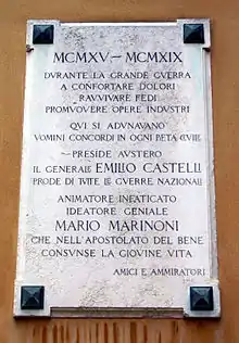Plaque en mémoire du général Emilio Castelli, à Venise.
