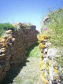 Le site est doté d'une enceinte intérieure fortifiée d'environ 50 m, renforcée de bastions circulaires et semi-circulaires d'épaisseur comprise entre 5 et 10 m, reliés par des murs relativement étroits.