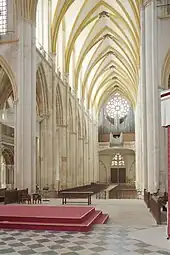 Le chœur est achevé rapidement, dès 1235, et se compose d'un chœur à sept pans encadré de deux tours harmoniques ouvertes en chapelles surmontées de tribunes.