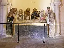 • Un christ en Croix, datant du XIIIe siècle. La sculpture est en bois polychrome. Les sculpteurs ont recherché la sobriété: pas de couronne d’épines, les pieds reposent à plat, pas de plaies sanglantes. Ce christ n’inspire pas la pitié. Il vient de mourir, mais déjà les artistes annoncent sa résurrection.