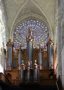 Le buffet d'orgues aurait été offert par l'archevêque Martin de Beaune au XVIe siècle mais cette tradition n'est pas documentée. Il est placé au fond du bras sud du transept sur une tribune en bois.