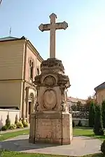 Juste à côté de la cathédrale se trouve une croix orthodoxe en marbre rouge du XVIIIe siècle qui passe pour le plus ancien monument public de Novi Sad ; elle a été restaurée en 1867 grâce à la philanthrope Marija Trandafil. Elle se trouve à son emplacement actuel depuis 1957[3].