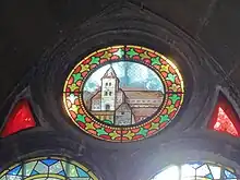 Deux de ces dernières soulignaient du côté oriental la travée qui était encadrée de deux tours et la troisième située au centre de la nef marquait de façon visible la coupure entre le chœur des chanoines situé à l'ouest avec l'espace réservé aux laïcs à l'est[18]. Les deux parties de la nef comptaient chacune douze colonnes disposées selon une symbolique du Moyen Âge censée représenter les douze apôtres et les douze prophètes, piliers de l'église au sens propre comme au sens figuré[18].