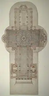 Selon les premiers plans, la cathédrale devait comporter une nef de douze travées, un transept et un petit chœur absidial, tous construits dans le style des voûtes en berceau (ou voûtes romanes).