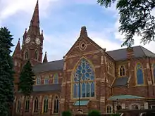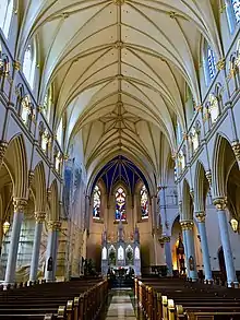 Cette cathédrale est construite dans le style néogothique français du Second Empire. Une grande partie des pierres viennent du démantèlement du canal d'Érié, fermé en 1871. L'extérieur consiste en pierres de grès rouge de Medina et de grès blanc d'Amherst et de Mercer[1].