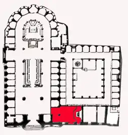L'église et un cloître, d'une parfaite unité de style, composent le bâtiment. La longueur de la cathédrale est de 90 mètres, sa largeur de 40 mètres. Le jardin du cloître est un carré de 25 mètres de côté. Les galeries qui l'entourent font 6 mètres de large. La cathédrale est orientée Sud-Est - Nord-Ouest : le Nord est en bas à gauche sur le plan.