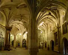 On distingue plus particulièrement le déambulatoire. La façade reconstruite en 1902, œuvre de Vicente Lampérez, est inspirée de celle de la Cathédrale de Reims. À l'intérieur se trouve également un arc renaissance de Esteban Jamete.