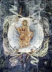 Les fresques du bas des absides représentent les plus grands patriarches et archevêques et celles du centre les principaux patriarches de Constantinople. Le chœur est orné des portraits des patriarches d'Alexandrie, Jérusalem et Antioche et de six papes romains. On trouve également Saint-Cyrille et son disciple Saint-Clément d'Ohrid[1].