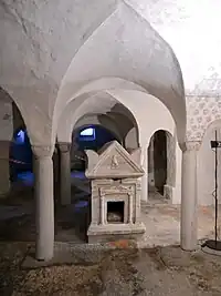 Au cours des années de construction, Warmondo remanie la partie la plus ancienne de la crypte qui accueillait alors un sarcophage romain (dédié au questeur Caio Atecio Valerio). Elle est employée comme urne funéraire pour contenir les reliques de San Besso (it). Le complexe de ces structures, avec les restes de l'abbaye de Fruttuaria, est le témoignage principal de l'architecture romane du Canavese (it).