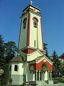 Dans la cour de l'église se trouvent un grand clocher de style « romantique », le palais épiscopal et un konak moderne[3].