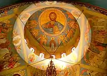 L'édifice est couronné de neuf bulbes, le plus important sur la coupole de l'église principale, quatre sur les tourelles aux angles du carré et trois au-dessus des autels et enfin un sur le clocher.
