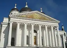L'édifice est en forme de croix grecque sur un rectangle. La longueur et la largeur de l'édifice sont égales et ont 30 sajènes (63,9 m), et la hauteur jusqu'à la croisée du milieu est de 22 sajènes (46,86 m). La cathédrale possède cinq coupoles de forme sphérique, de hauts frontons, avec des fresques, quatre portiques, et quarante-huit colonnes. Les fresques des frontons représentent des sujets bibliques: la résurrection du Christ (fronton Est), l'apparition de la Trinité à Moïse (fronton Sud), l'assemblée de tous les saints (fronton Ouest) et l'intercession de la Vierge (fronton Nord).