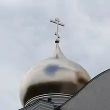 Elle est surmontée de cinq bulbes qui ont été fabriqués à Vannes (Morbihan). Ils sont constitués de vingt pétales de fibre de verre recouverts de 90 000 feuilles d'un alliage d’or et de palladium, ce qui leur confère un aspect relativement mat. Ces cinq bulbes symbolisent le Christ et les quatre Évangélistes du Nouveau Testament : Jean, Luc, Marc et Matthieu. Le plus grand mesure 17 m de circonférence et pèse 8 tonnes.