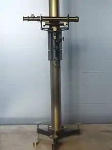 Un cathétomètre est un instrument d'optique permettant des visées précises[1]. Il permet de mesurer la distance verticale entre deux points. Il était utilisé en particulier en travaux publics pour mesurer la flèche de certains éléments (poutre…).