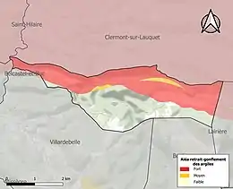 Le retrait-gonflement des sols argileux est susceptible d'engendrer des dommages importants aux bâtiments en cas d’alternance de périodes de sécheresse et de pluie. 53,2 % de la superficie communale est en aléa moyen ou fort (75,2 % au niveau départemental et 48,5 % au niveau national). Sur les 7 bâtiments dénombrés sur la commune en 2019, 7 sont en aléa moyen ou fort, soit 100 %, à comparer aux 94 % au niveau départemental et 54 % au niveau national. Une cartographie de l'exposition du territoire national au retrait gonflement des sols argileux est disponible sur le site du BRGM[26],[Carte 3].