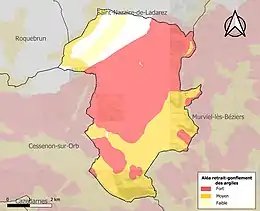 Le retrait-gonflement des sols argileux est susceptible d'engendrer des dommages importants aux bâtiments en cas d’alternance de périodes de sécheresse et de pluie. 85,4 % de la superficie communale est en aléa moyen ou fort (59,3 % au niveau départemental et 48,5 % au niveau national). Sur les 407 bâtiments dénombrés sur la commune en 2019, 406 sont en aléa moyen ou fort, soit 100 %, à comparer aux 85 % au niveau départemental et 54 % au niveau national. Une cartographie de l'exposition du territoire national au retrait gonflement des sols argileux est disponible sur le site du BRGM[16],[Carte 2].