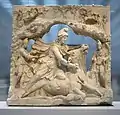 Groupe statuaire provenant du mithraeum de Sidon, représentant Mithra sacrifiant le taureau (au centre), flanqué de Cautopates (gauche) et Cautes (droite).