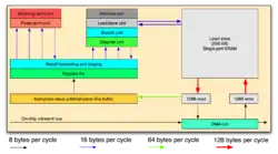 - Enfin, pour maximiser les performances en évitant d'attendre l'EIB, le code s'exécutant sur un SPU doit effectuer ses calculs en même temps qu'ont lieu les transferts, par exemple en utilisant plusieurs mémoires tampons.