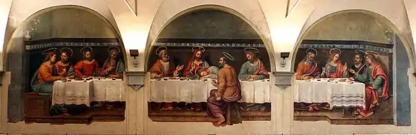 Largement inspirée de celles de Domenico Ghirlandaio la fresque prend place dans les trois lunettes du mur du fond du réfectoire prolongeant d'une manière illusionniste la salle des repas.