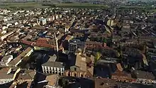 - La structure urbaine remonte au Moyen Âge et est caractérisée par la présence sur les voies principales de portiques et de palais historiques, comme le palais du gouverneur, la Casa Pannini et l’église du Rosaire.