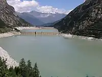 Le réservoir inférieur est situé à Edolo sur la rive nord de l'Oglio. Il a été créé par une digue circulaire et emmagasine l'eau pour le pompage. Sur la contenance de ce réservoir (1,4 million de m³), 1,279 million de m3 peuvent être utilisés pour le pompage. Son altitude est de 655 m.