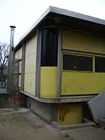 Le bâtiment préfabriqué est constitué d’une ossature métallique et remplissage de panneaux de métal plié avec isolant intégré. Les fenêtres à structure métallique comportent des vitrages en plexiglas. Les angles du bâtiment sont traités en plexiglas courbe assemblé sur les poteaux de structure par des joints d’étanchéité en caoutchouc.