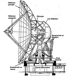 - Illumination : type de système utilisé au cœur de la parabole, pour l'émission et la réception des signaux (par ex. : Cassegrain)