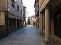 La Basilique Sainte-Marie-Majeure et le couvent Saint-François marquent les points stratégiques d'ouest en est de la vieille ville sur deux collines. Entre eux, la ville médiévale et son labyrinthe de rues (ruas) et de places médiévales furent façonnées. Les rues ont été structurées autour d'un axe principal qui correspond aux actuelles rues Sarmiento et Isabelle II, et de là, le reste des rues a été divisé, formant un exemple classique de ville médiévale avec un plan en arêtes de poisson, où les rues sont structurées à partir d'un axe central unique sur lequel viennent se greffer les rues secondaires[4]. La Rue Real (rue Royale) traverse une partie de la vieille ville du nord au sud. Entre les rues, le centre historique est parsemé de places aux proportions régulières, carrées ou rectangulaires, avec de nombreuses maisons nobles aux armoiries en pierre, qui aèrent le tissu urbain et lui confèrent de l'élégance.