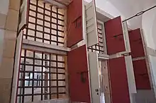 Le musée présente des grandes salles dépouillées avec des épais murs de pierre et de massives grilles de métal créant une atmosphère particulière.