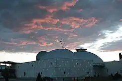 Le planétarium hybride à sphère complète, permet d'observer le ciel étoilé avec plus de 10 millions d'étoiles. Il existe à la fois un projecteur optique et un projecteur numérique, qui peuvent être utilisés ensemble ou séparément. En plus du plafond et des murs, l'image passe également par le sol, c'est pourquoi son en verre. Il existe peu de planétariums sphériques de ce type dans le monde, un exemple étant l' Hitachi Civic Center Planetarium d’Ibaraki au Japon[6].