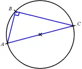 Prenons sur un cercle trois points A, B et C, dont deux — A et C — sont diamétralement opposés (c'est-à-dire que [AC] est un diamètre). Alors, le triangle ABC est rectangle en B.