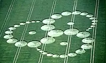 Selon le technicien en électricité Colin Andrews, auteur, en 1989, du livre Circular evidence et inventeur de l'expression « crop circle »[56], 80 % des cercles seraient des œuvres artistiques humaines et les 20 % restants auraient une autre origine (nature, machine, animal, ovni, etc.)[57]. D'après lui, le phénomène annonce une période de chaos de l'humanité, période dont la survenue pourrait être empêchée par une évolution de la conscience humaine[58].