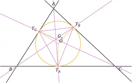 Leur point de concours est appelé le point de Gergonne du triangle et le triangle TATBTC, le triangle de contact (ou triangle de Gergonne) du triangle ABC.