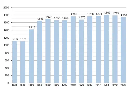 Les chiffres des années 1831 à 1970 tiennent compte des chiffres des anciennes communes fusionnées.