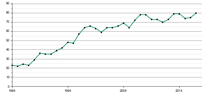 | Précipitations (mm) | 55,3 | 30,7 | 42,9 | 79 | 98 | 88,8 | 64,9 | 83,4 | 86,2 | 82,9 | 86,6 | 68 | 866,8 |